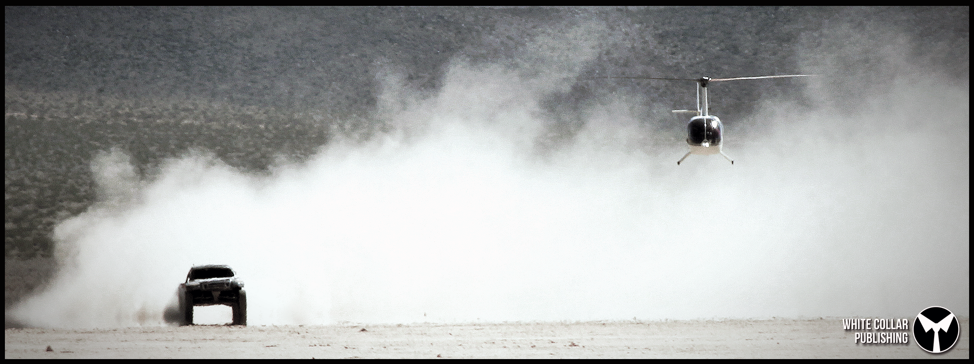 I headed north up the I-15 a little over 12 miles to the next exit and followed my course map to the place where the county road was closest to the course near “Rockets” lakebed. The MINT 400 and Best in the Desert do an excellent job of providing media credentials and vehicles tags, so getting through security and race ops was easy and professional. I tucked my truck in the edge of the desert, grabbed my camera, an extra pack of smokes, some water, another Monster, and with my shemagh in place, I began walking into the great unknown.